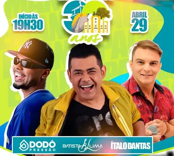 Baraúna celebra 32 anos de emancipação com shows de Batista Lima e Dodô Pressão nesta quarta (29)