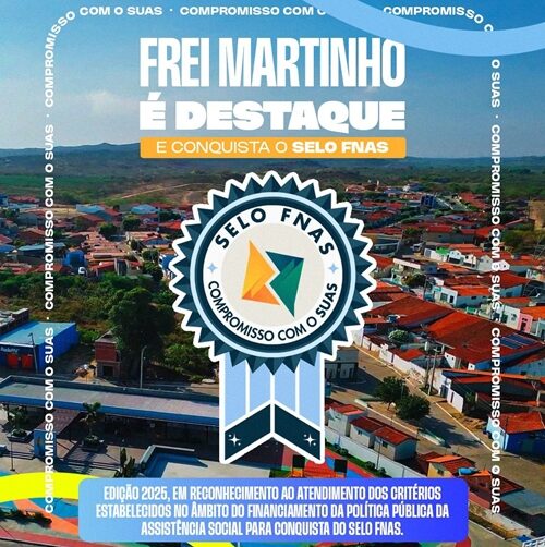 O município de Frei Martinho foi certificado com o Selo FNAS 2025, em reconhecimento ao cumprimento dos critérios do financiamento da política pública de Assistência Social.