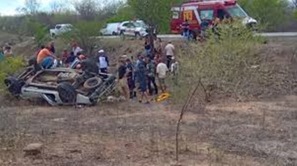 Homem morre e seis pessoas ficam feridas após capotamento no Sertão da Paraíba