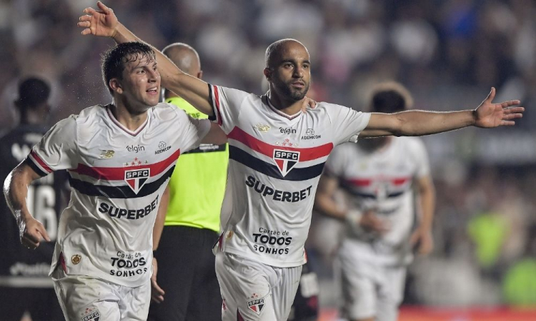 A pressão deu lugar aos sorrisos. Na noite deste sábado, o São Paulo teve uma atuação dominante no clássico contra o Santos, no Morumbis, venceu por 2 a 0 e respirou no Campeonato Paulista. O Tricolor aproveitou-se da expulsão de Gabriel Menino, ainda no primeiro tempo, para construir a vitória naturalmente, com gols de Tapia e Luciano, logo no início da segunda etapa. São dois resultados positivos consecutivos para Hernán Crespo e companhia, que estrearam com vitória no Brasileirão ao superarem o Flamengo na quarta-feira.