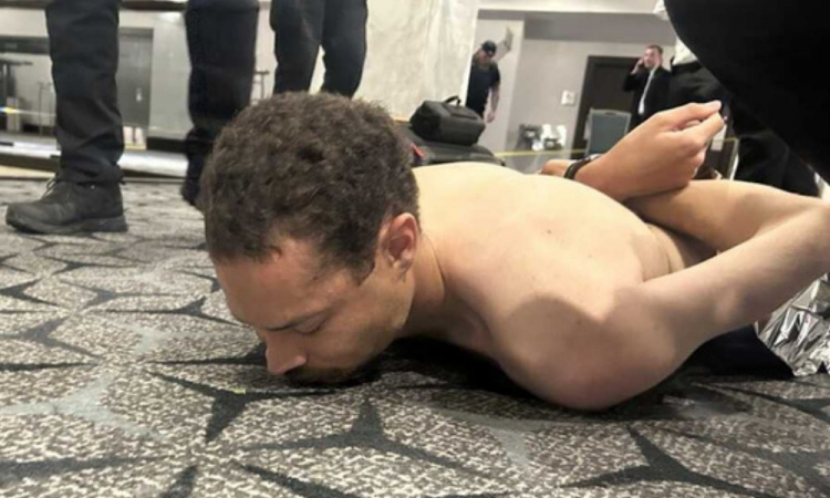 Após uma rápida troca de tiros com os agentes do Serviço Secreto, ele foi detido no local. Trump publicou fotos do suspeito algemado sobre o carpete do hotel, sem camisa e deitado de bruços.