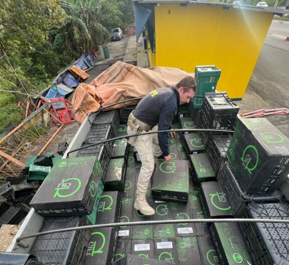 De acordo com informações, o caminhão abordado transportava uma carga com 169 caixas, totalizando 8.450 maços de cigarros contrabandeados do Paraguai.
