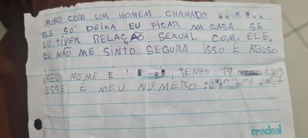 Na Paraíba jovem usa bilhete para pedir ajuda e é salva de idoso que a mantinha em cárcere e a estuprava